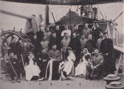 The crew, Medical Officers and Sisters on the Hospital Ship Spartan. Mary Ridley Makepeace is numbered ‘5’[2]